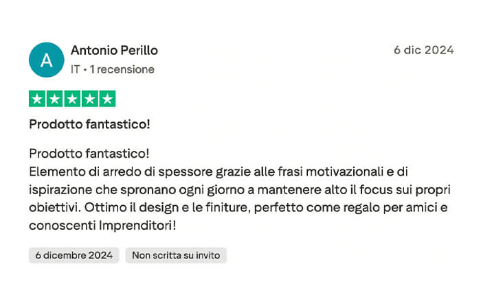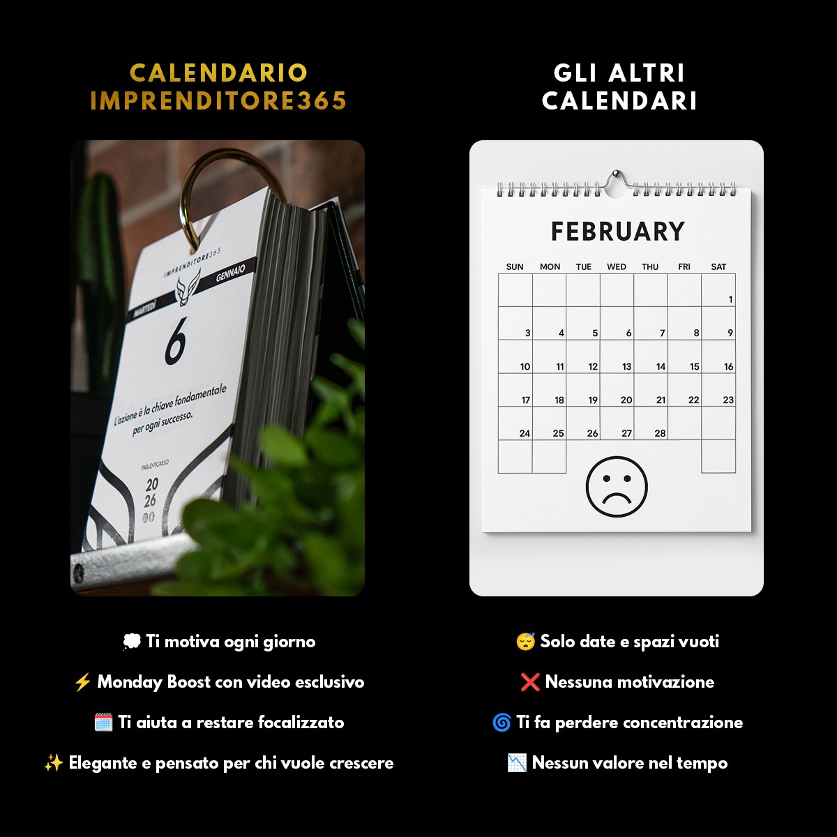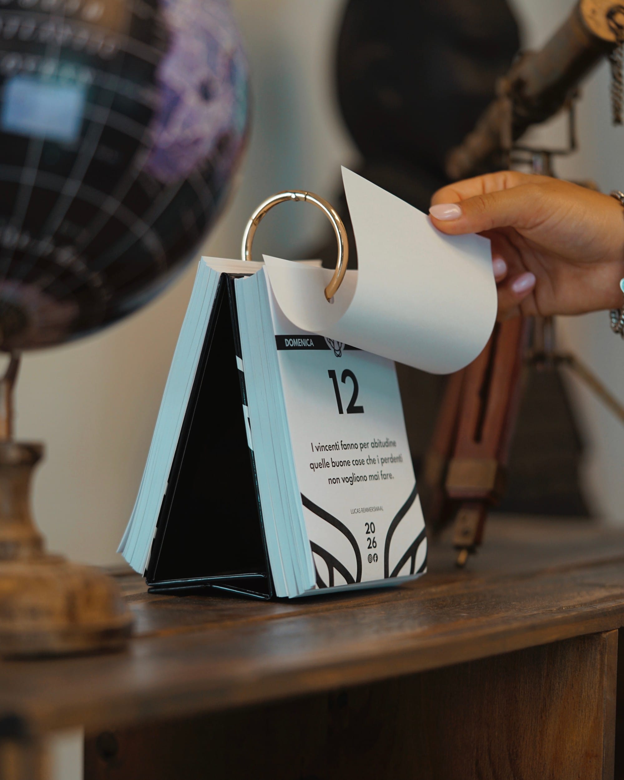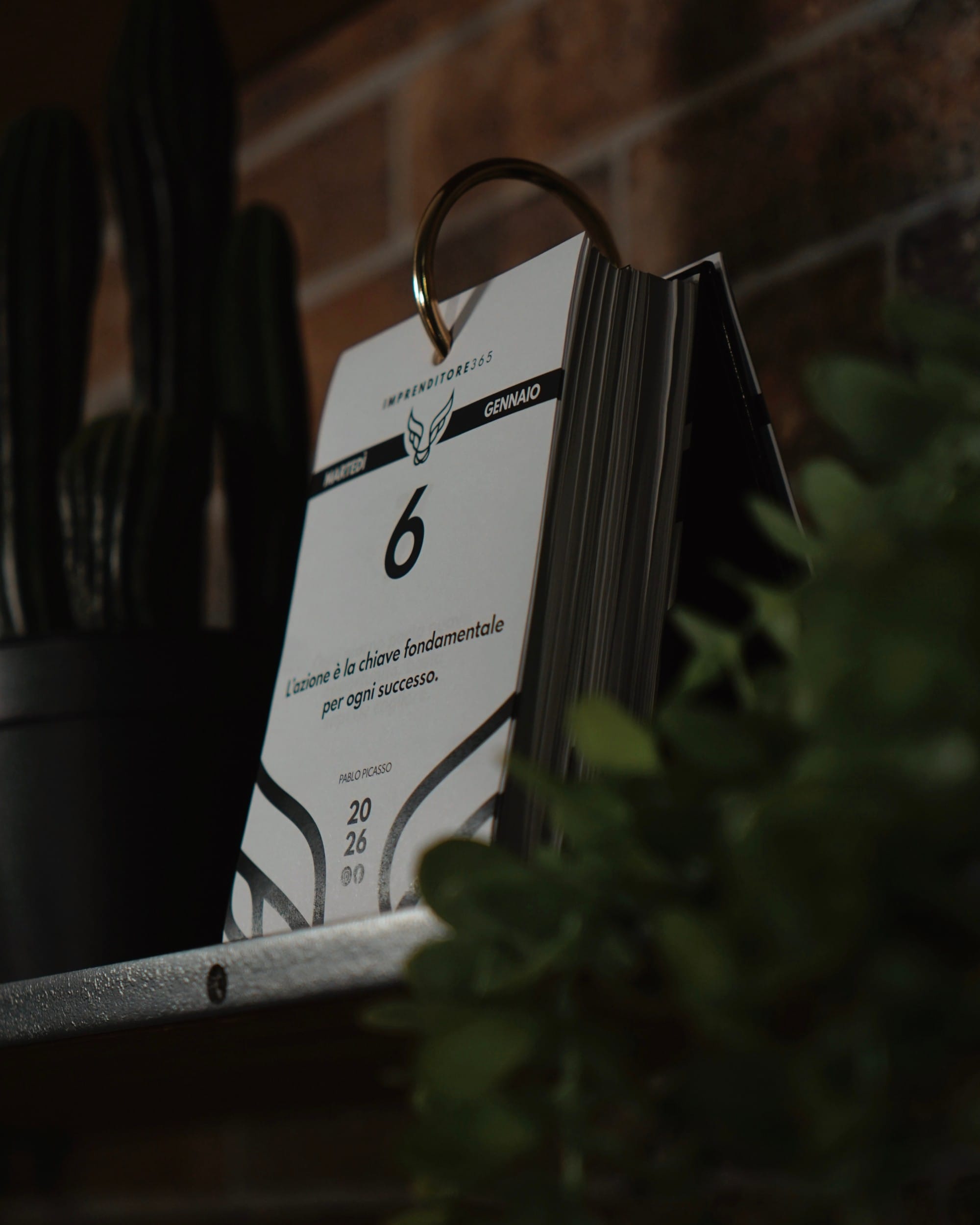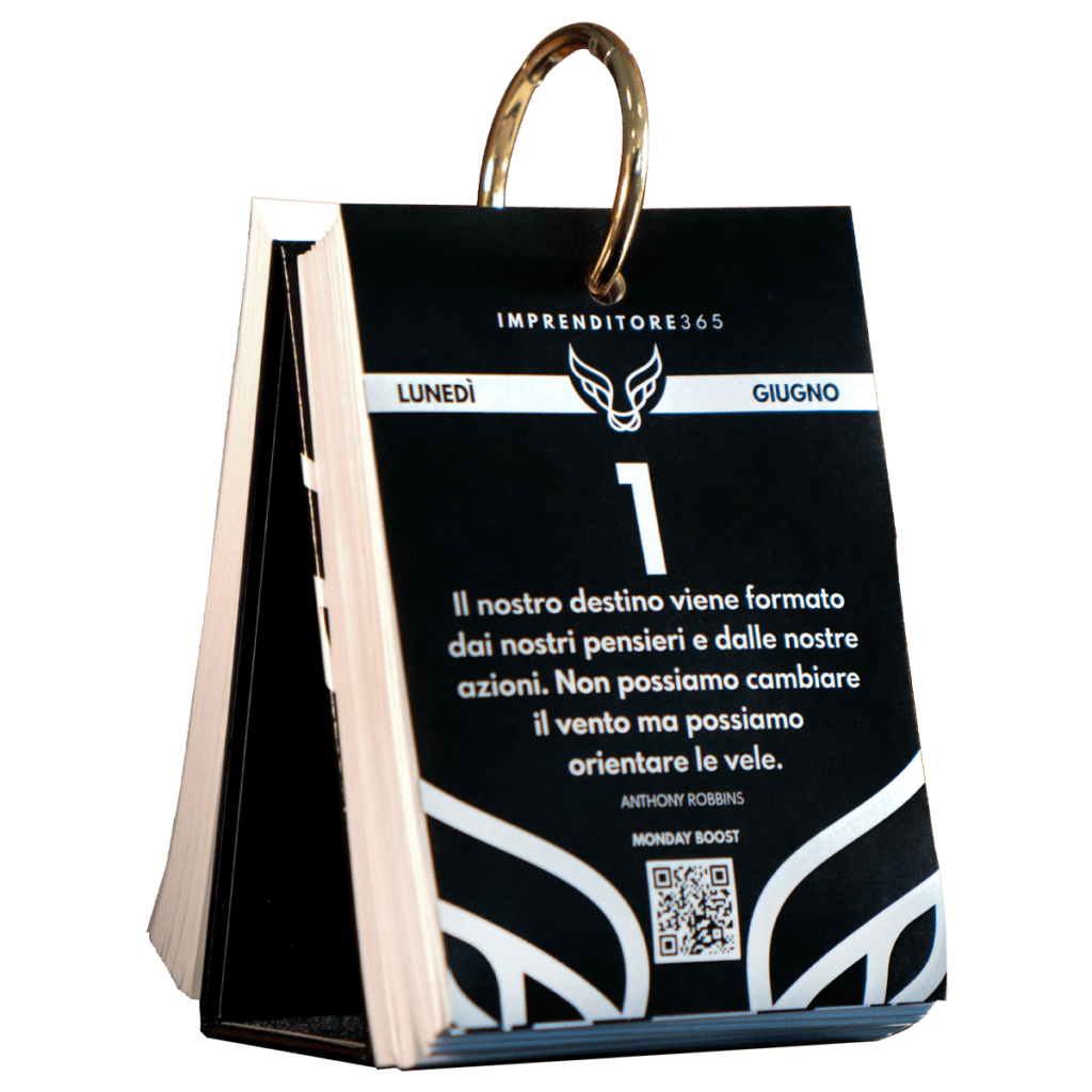 Il Calendario Imprenditore 365 non è un semplice calendario. Ogni giorno dell’anno regala una frase motivazionale, pensata per ispirare e accompagnare chi lo utilizza nelle sfide quotidiane.